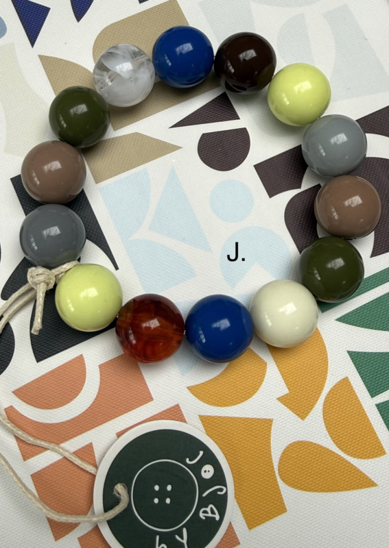 The resin-colored beads are dyed throughout, making every outfit unique and especially cheerful.