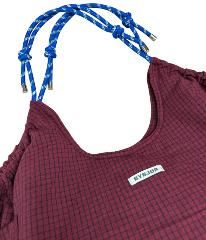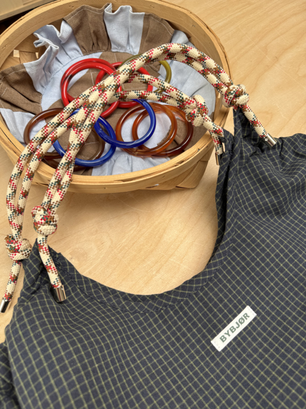 The knotted cords straps are adjustable from 30 to 60 cm in length.