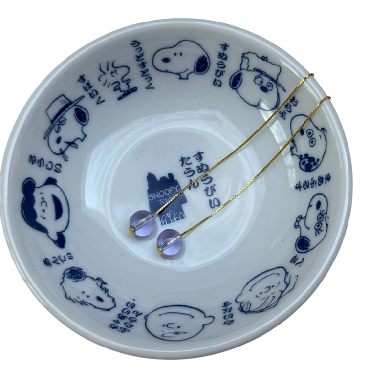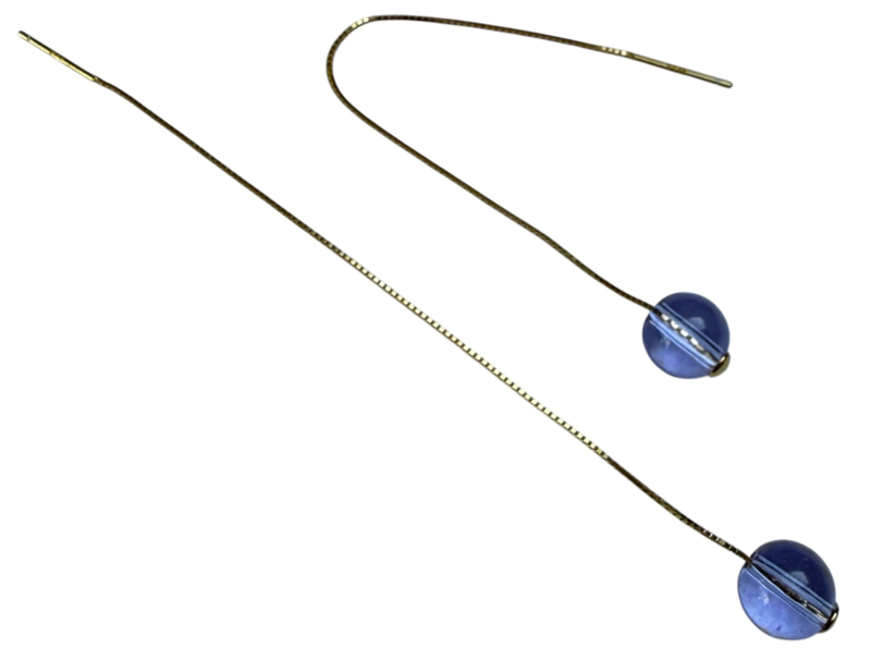 New! Bybjor Sterling Silver 18K-Goldplated Threader Earrings with a lovely lavender clear glass charm.